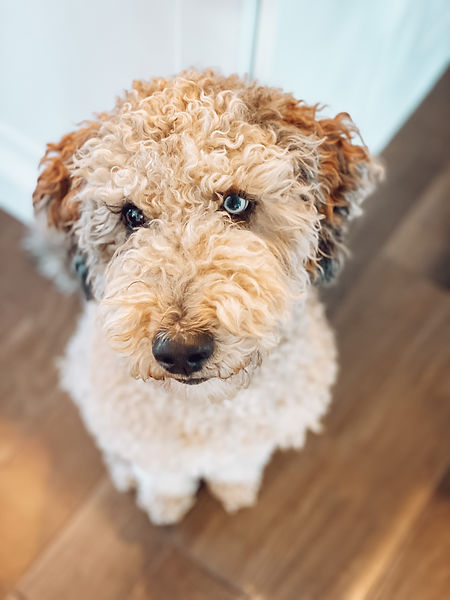 Brenda is an F1 bernadoodle who was born in June of 2022. Her average weight is around 65-70 lbs and she could not be a better mother. Brenda is the most gentle, calm dog we have ever owned. She has beautiful coloring that she has shared with her offspring. You couldn't ask for a better dam. This little lady is very loved.